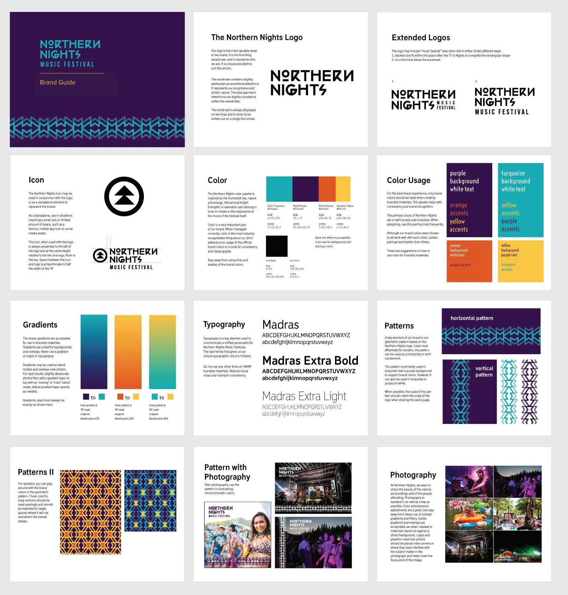 Northern Nights Music Festival needed a refreshed look for its second year. I created a new color palette, brand patterns, and social media assets to establish a cohesive brand guide. Collaborating with tattoo artist Erik Smiley, we also designed custom artwork for apparel and festival merchandise.